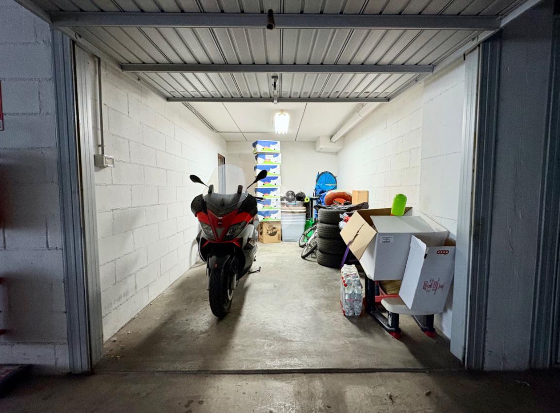 L’immobile è dotato di un box auto di proprietà, corredato da una piccola cantina, ideale come spazio di deposito.