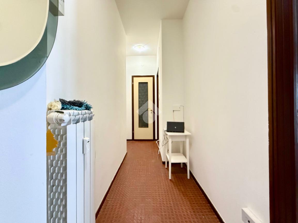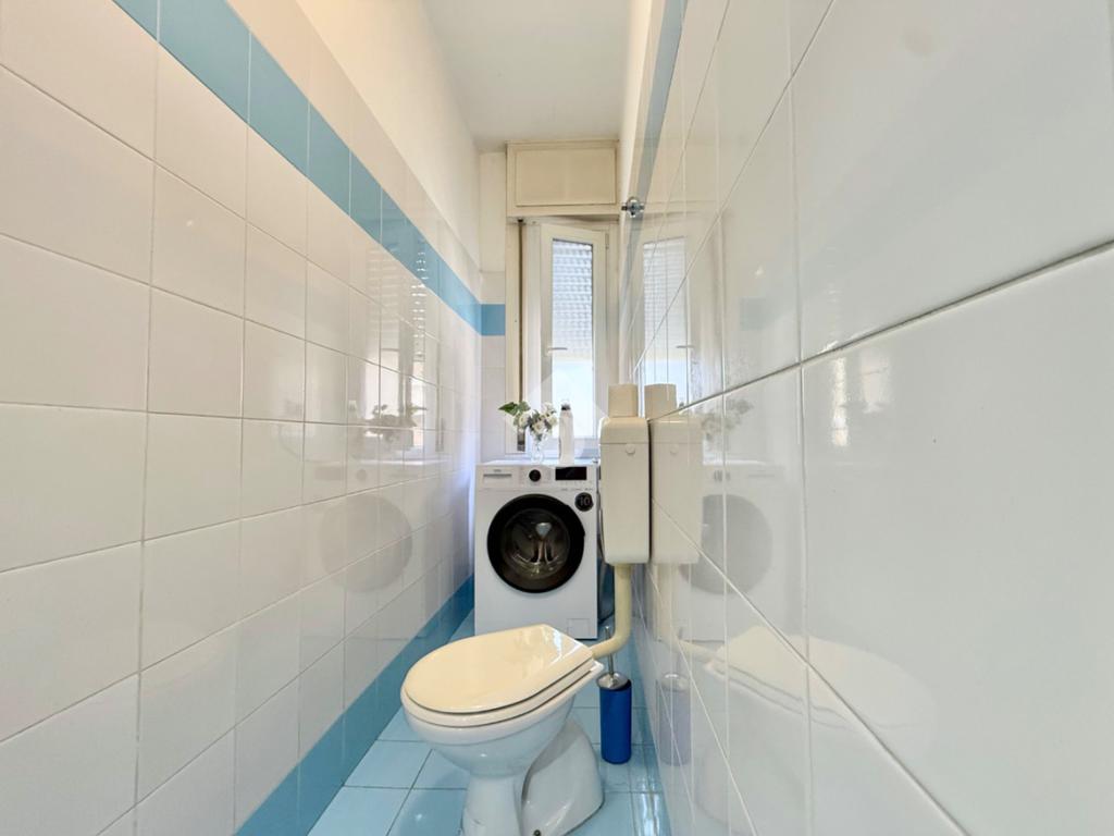 L’ingresso si apre su un corridoio lungo e funzionale, che distribuisce ordinatamente tutti gli ambienti in linea. Si parte dal soggiorno luminoso, arredato con zona pranzo, seguito dalla cucina, compatta ma ben organizzata. Proseguendo, si incontra il bagno finestrato, completo di vasca e lavatrice, e infine la camera matrimoniale, spaziosa e accogliente.