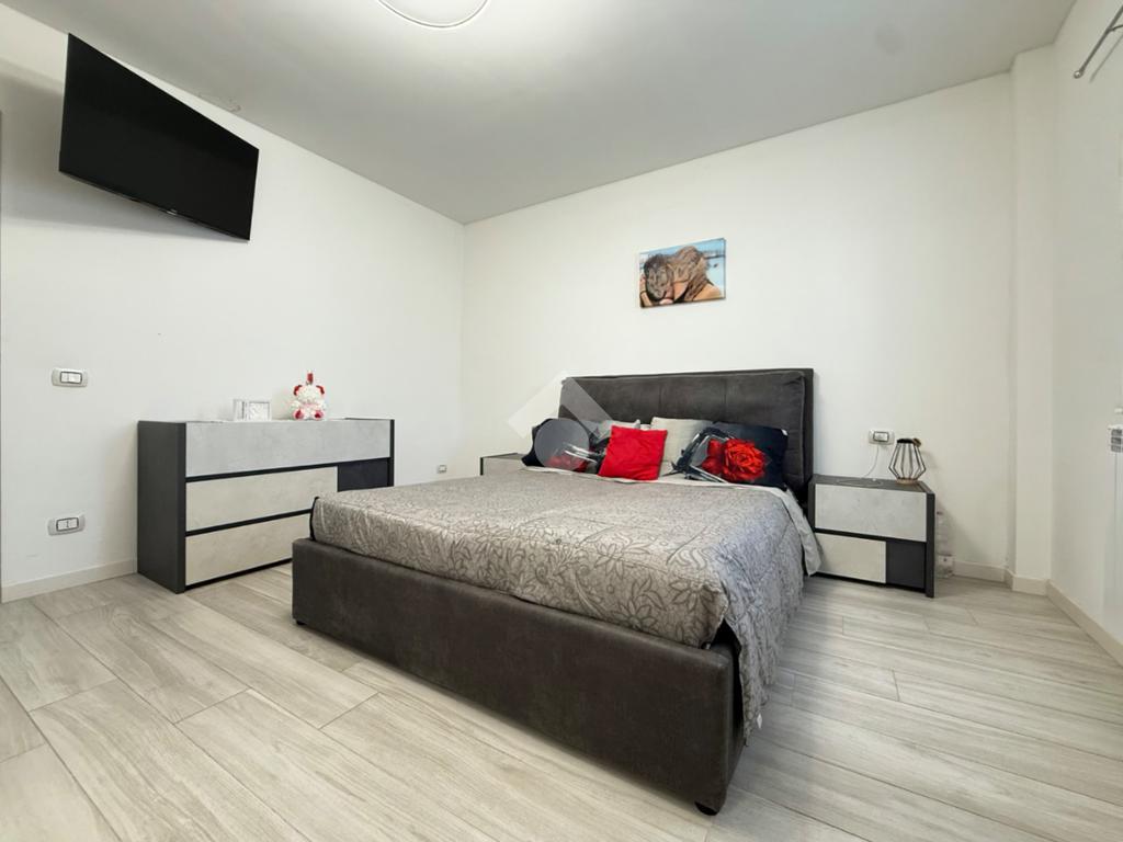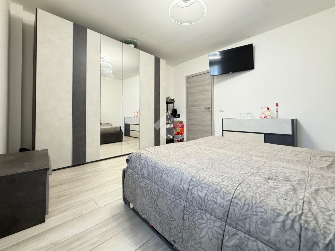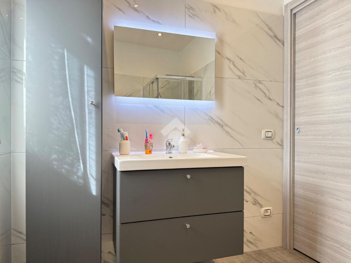 La zona notte è composta da una comoda camera matrimoniale, facilmente personalizzabile negli arredi, e da un bagno finestrato completamente rimesso a nuovo, dotato di moderno box doccia e finiture attuali che conferiscono eleganza e comfort.